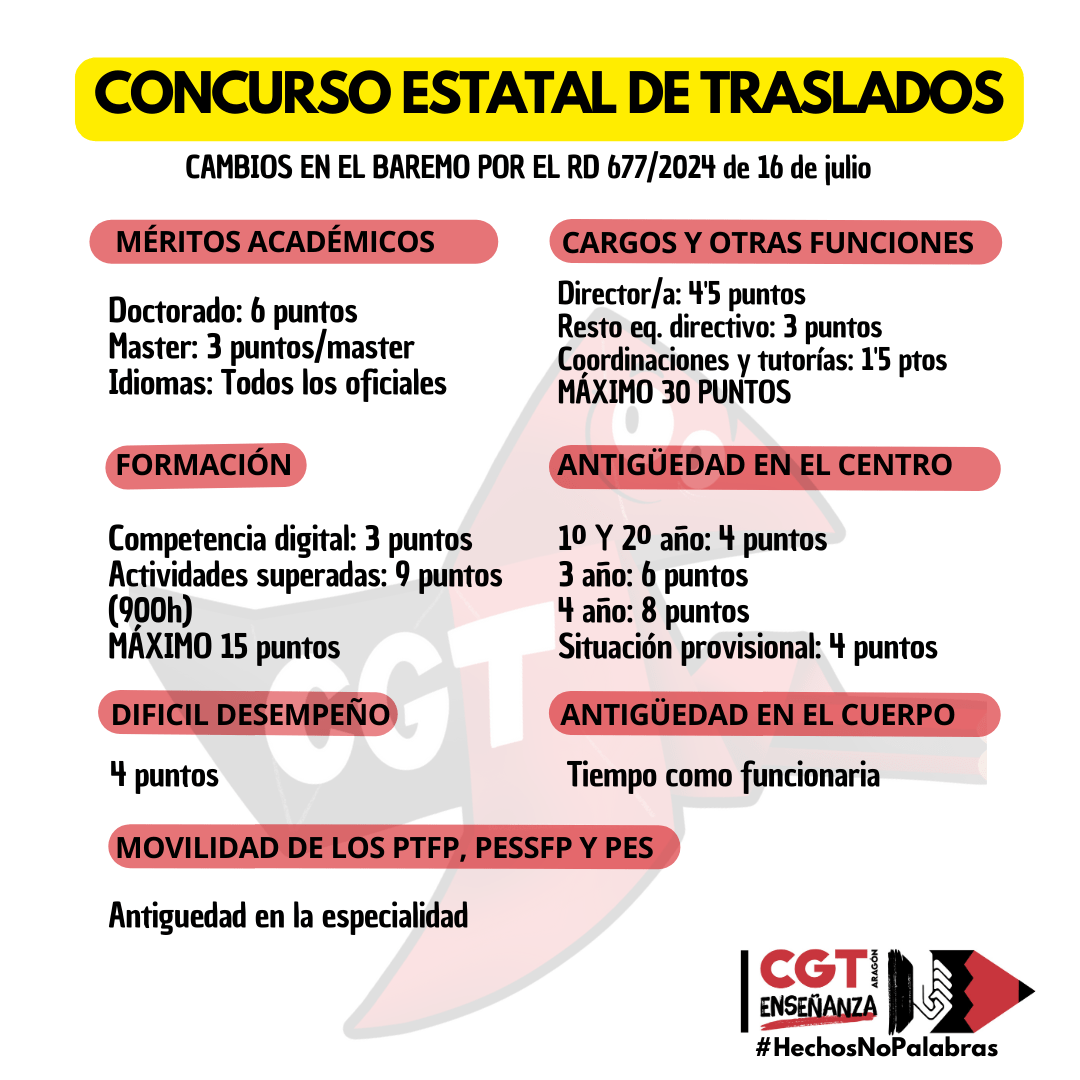 En la infografía encontraréis los cambios más relevantes en el baremo del próximo concurso de traslados. Podéis consultar el Real Decreto entero en: RD 677/2024 de 16 de julio