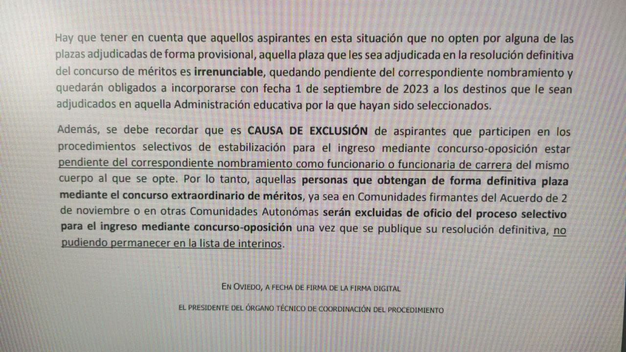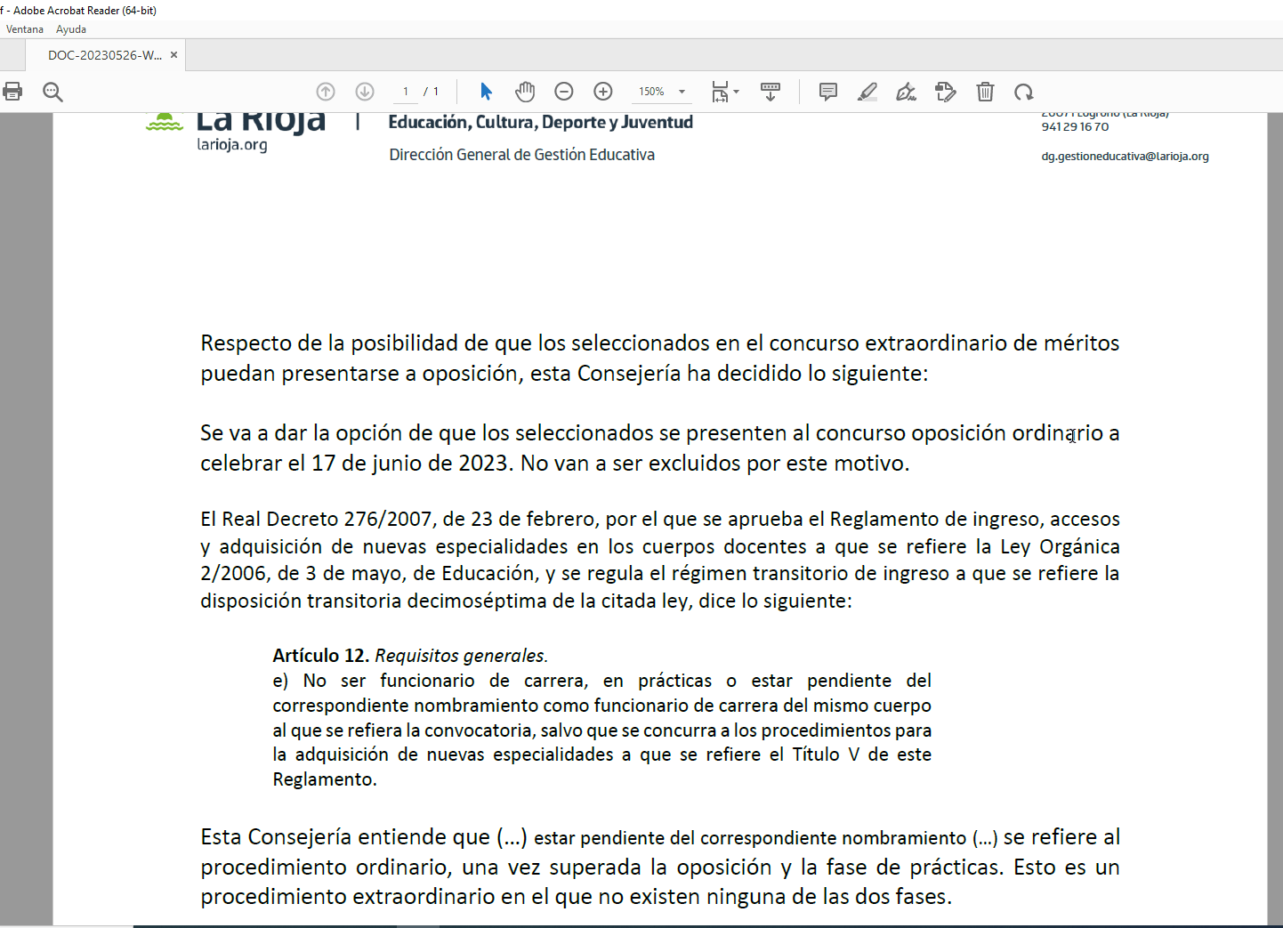 A cuatro días de la oposición, la Dirección General de Personal ha colgado una breve nota en la web del Departamento donde se da autorización a la posibilidad de presentarse a las oposiciones aún teniendo plaza definitiva adjudicada. Pero, a diferencia de otras comunidades, no ha dado ningún argumento legal de la decisión tomada; lo que aún genera más dudas.