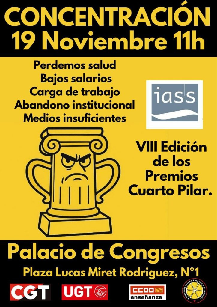 Mientras se celebra la VIII Edición de los Premios Cuarto Pilar del IASS, más de 600 trabajadores y trabajadoras de estos servicios continúan soportando unas condiciones laborales que ponen en riesgo tanto su salud como la calidad de la atención que prestan. Entre los problemas más graves se encuentran: