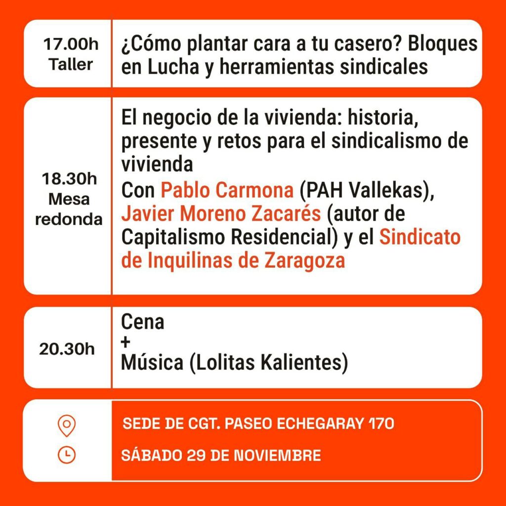 17h – Taller: Aprende a defenderte de tu casero. // Taller: Bloques en Lucha en Zaragoza: ¿cómo evitar que nos echen de nuestras casas y nuestros barrios?